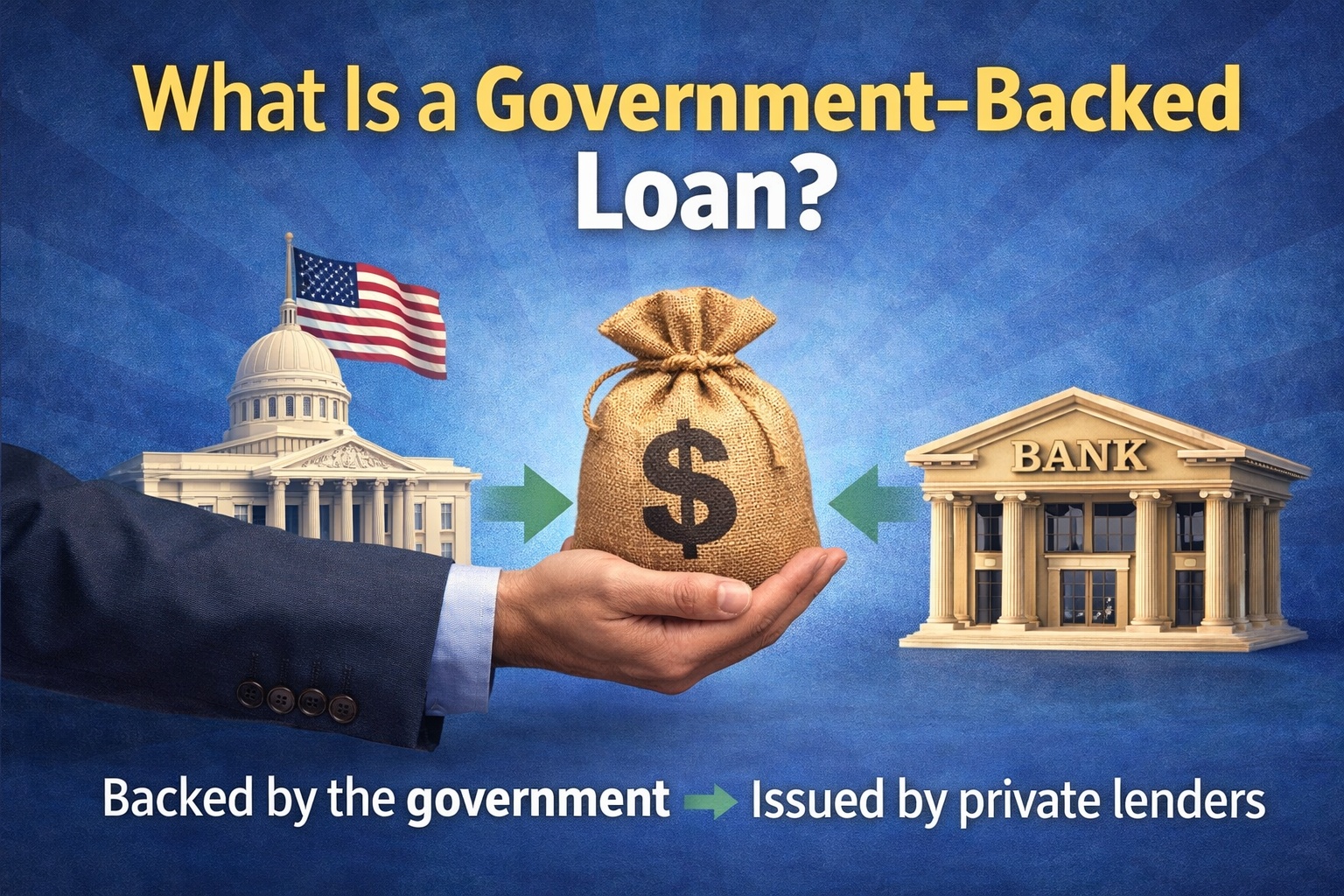 A government-backed loan isn’t issued directly by the government in most cases. Instead, private lenders (like banks or credit unions) provide the money, and a government agency guarantees part of the loan.