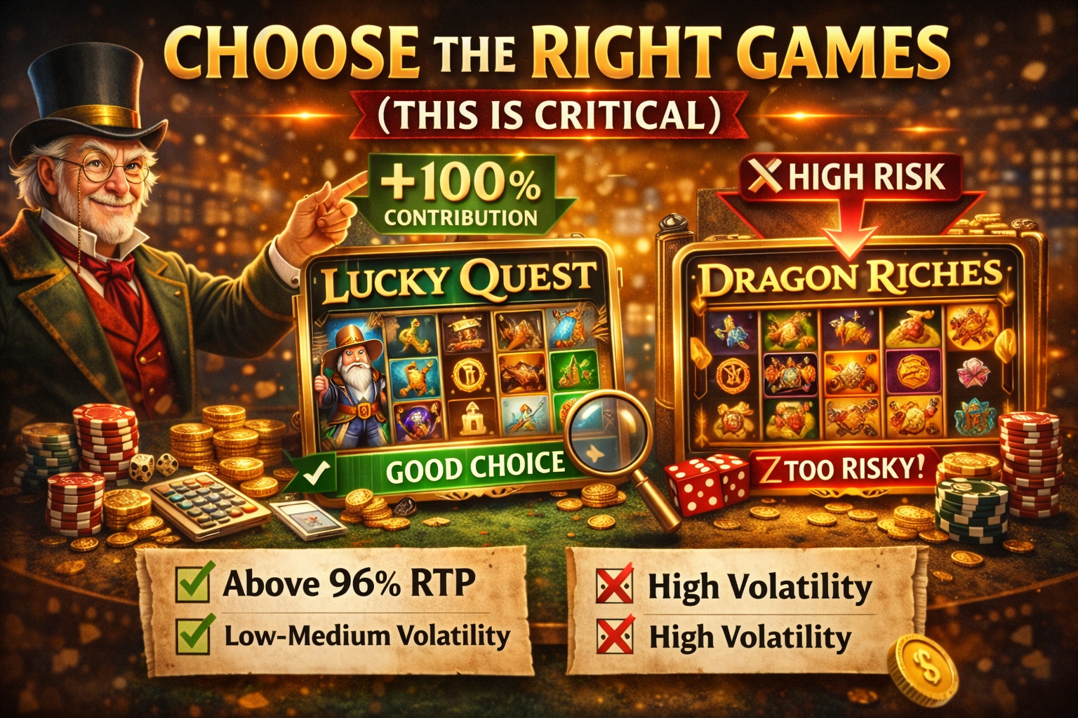 High volatility games can wipe your balance before you even make a dent in wagering. Low or medium volatility games tend to give more frequent small wins, helping you sustain your balance while grinding through requirements.